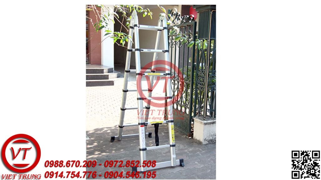 - Chất liệu nhôm bền đẹp, không gỉ sét, luôn sáng bóng. Chân thang vững chắc, chịu lực tốt, đứng được trên nhiều địa hình. Chân thang được bọc cao su chống trượt.