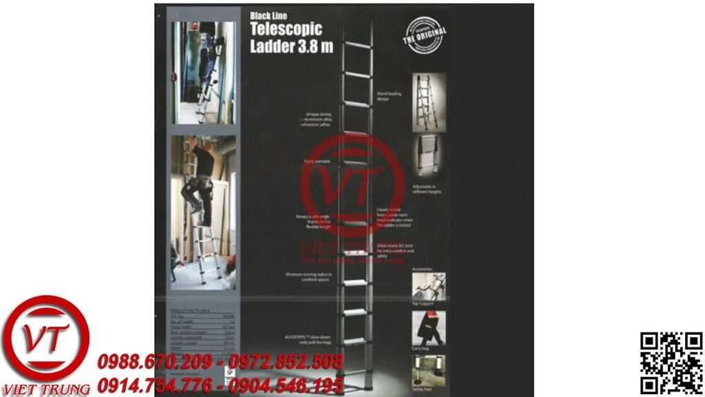 Là sản phẩm được sản xuất bởi Telesteps Group Thụy Điển với công nghệ tiêu chuẩn quốc tế, thang nhôm rút Telesteps 60238(VT-TNM161). là 1 trong những loại thang nhôm được nhiều người tin dùng với chất lượng đảm bảo, tính tiện lợi và linh hoạt. Tính năng linh hoạt, gọn nhẹ và tiện lợi của thang nhôm rút giúp bạn thực hiện các công việc sửa chữa, lau chùi, vệ sinh…trên cao một cách dễ dàng. Được sử dụng nhiều trong các ngành viễn thông, điện lực, các công trình, công ty và ngay cả tại gia đình bạn.